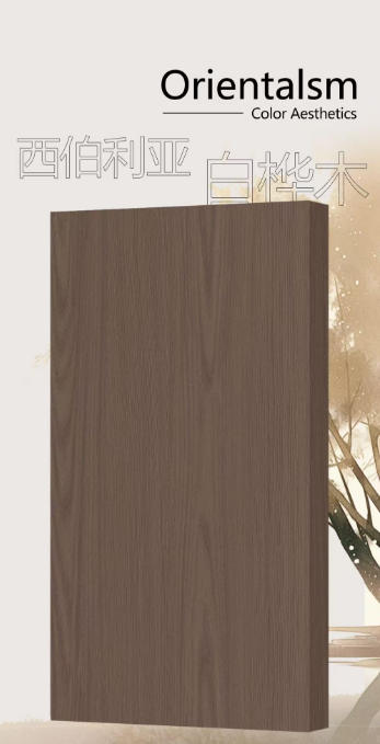 「西伯利亚白桦木 SM96055」的沉淀年轮纹路,宁静诠释岁月轮回,历经干百年自然造化,木纹经络丝丝入扣,可从中体味时间更迭。它以建筑语言缔造饰面美学,探索理性美学,为空间注入灵魂。